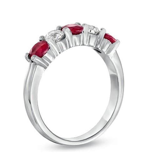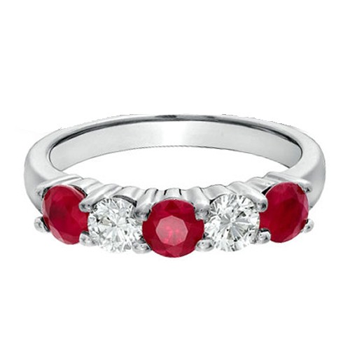 14k White Gold Round Fire Red Ruby and Round Diamond Ring