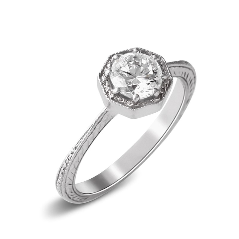 14K White Gold Vintage Octagon Solitaire Engagement Ring