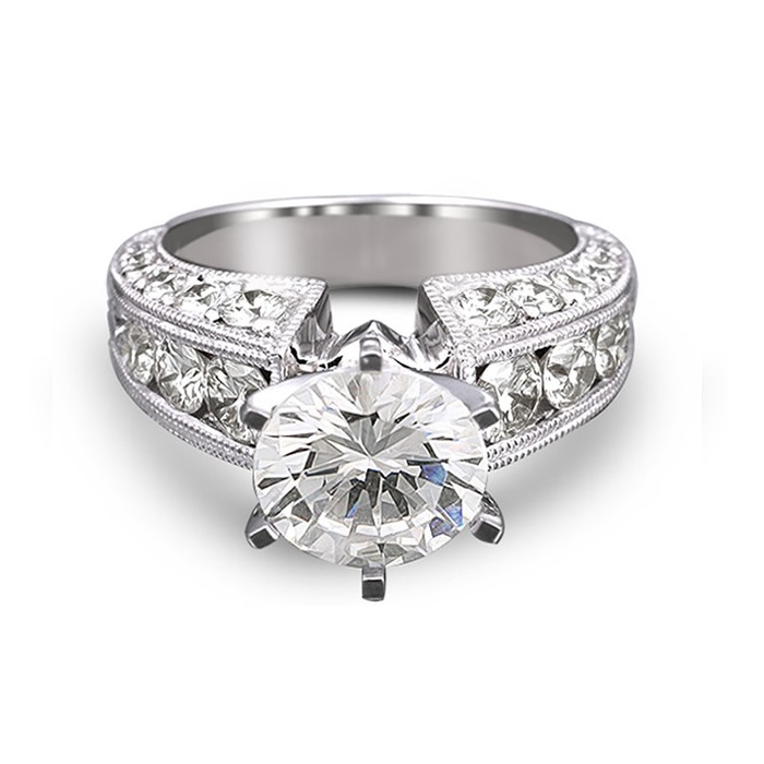 14K White Gold Milgrain Channel-Pave Solitaire Engagement Ring