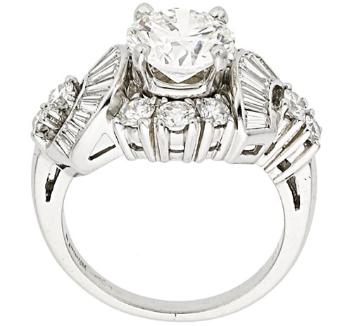 Platinum Round Brilliant Cut Baguette Cut Full Cut Diamonds Ring